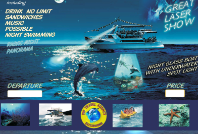 Accompanied by a delightful musical atmosphere, the highlight of the night is our spectacular Laser Show, guaranteed to leave you spellbound. Immerse yourself in the underwater nightlife of Cres through our two large Glass Boats adorned with LED illumination, all while indulging in your preferred drinks, including wine, beer, soft drinks, and more, as consumption is unlimited and included in the price. As we return to the port of Cres, delight in a delectable Pizza Cut to round off your evening.
