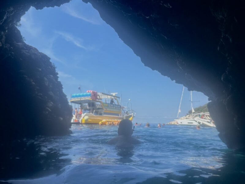 1. Beach of Blue Caves: In the morning, we’ll set sail to our first destination – the Blue Caves beach. We’ll anchor just a short distance from the Cave entrance, where our crew will guide you inside, sharing fascinating highlights and stories about this breathtaking blue wonder.