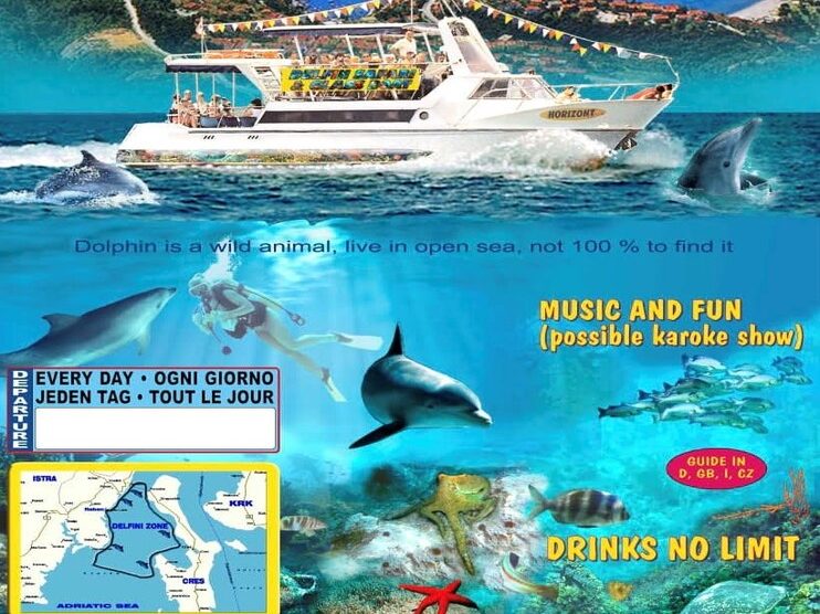 Join us for the 🐬 Dolphin Sunset Tour 🐬 – an unforgettable evening boat adventure where we search for dolphins every day on the northern side of Cres Island, close to the fish farms.